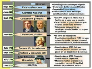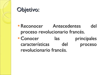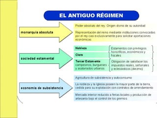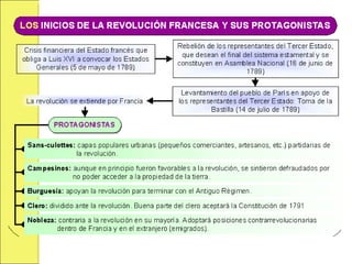 El documento describe los antecedentes y orígenes de la Revolución Francesa. Explica que la Ilustración y pensadores como Montesquieu, Voltaire y Rousseau influyeron en cuestionar el Antiguo Régimen absolutista. La crisis económica y el endeudamiento del Estado llevaron a Luis XVI a convocar los Estados Generales en 1789. El Tercer Estado exigió igualdad de derechos, dando inicio a la Revolución cuando se proclamó Asamblea Nacional.