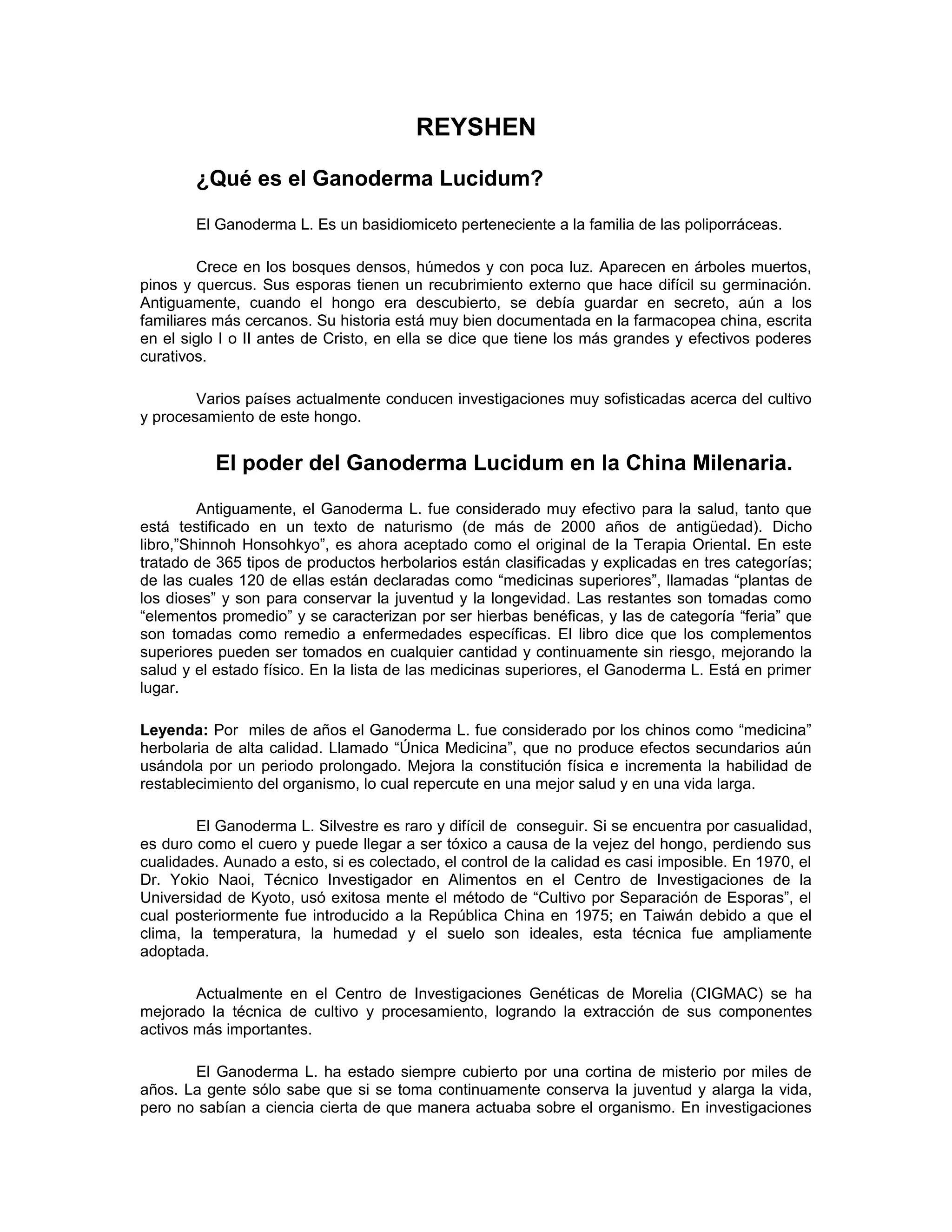 1. El Ganoderma Lucidum es un hongo que crece en árboles muertos y ha sido usado en la medicina tradicional china por más de 2000 años. Se le atribuyen varios efectos curativos como reducir el colesterol, la glucosa en sangre, e inhibir tumores. 2. Contiene varios compuestos activos como polisacáridos, triterpenos y esteroides que ejercen efectos como mejorar la circulación, regular la presión arterial, e inhibir la agregación plaquetaria. 3. Est