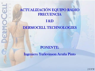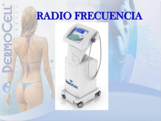 Este documento presenta información sobre un equipo de radiofrecuencia Dermocell para tratamientos de rejuvenecimiento de la piel. Explica cómo funcionan las ondas de radiofrecuencia para calentar los tejidos de forma segura y estimular la producción de colágeno. También describe las especificaciones técnicas del equipo y cómo afecta el tratamiento a las fibras de colágeno con múltiples sesiones.