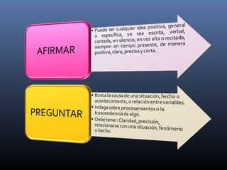 El documento describe los procesos de adquisición y procesamiento de información. Explica que la información se puede acceder de forma sensorial y racional y que las estrategias didácticas organizan una secuencia de acciones para que los estudiantes capturen y seleccionen las propiedades fundamentales de los objetos o fenómenos. También define el procesamiento de la información como la secuencia de acciones que permiten captar estímulos, procesarlos según las necesidades e intereses para dar una respuesta, y que la información debe ser procesada de forma con