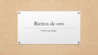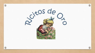 Ricitos de Oro es una niña curiosa que un día encuentra una cabaña en el bosque y entra sin permision. Dentro prueba la sopa, se sienta en una silla pequeña que rompe, y luego se duerme en la cama del osito. Cuando regresan los dueños de la casa, los osos, se enojan al encontrar que alguien comió su sopa y rompió su silla. Despiertan a Ricitos asustada que huye rápidamente de la cabaña.
