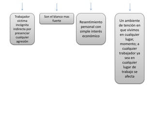 Los riesgos públicos son elementos en el espacio público que pueden poner en peligro la salud física o mental de los trabajadores. Existen varios tipos de amenazas como la agresión externa, que puede ser individual o indiscriminada. La agresión individual se dirige a una víctima en particular, mientras que la agresión indiscriminada puede afectar a cualquier trabajador en cualquier momento y lugar.