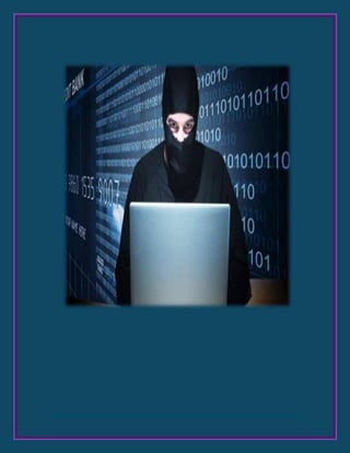 El documento describe varios riesgos de usar Internet, incluyendo el robo de información a través de phishing o redes sociales, enfermedades causadas por un uso excesivo, y cómo prevenir estos riesgos a través de medidas de seguridad como mantener actualizado el antivirus y no divulgar información personal. Se concluye que aunque Internet puede ser una herramienta útil, requiere supervisión para los niños debido a los diversos peligros como contenido inapropiado.
