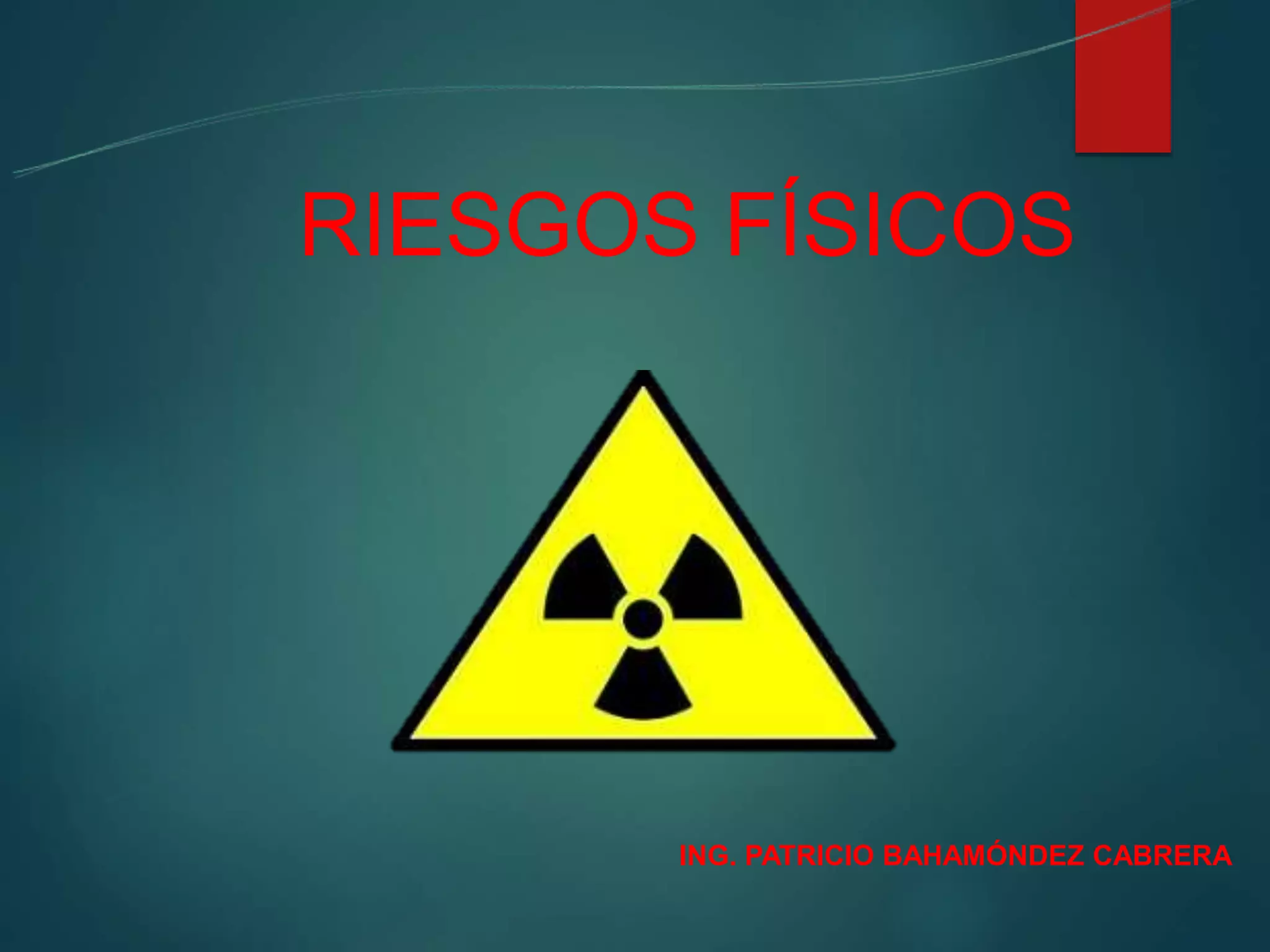 Este documento trata sobre los principales riesgos físicos en el trabajo como el ruido, las vibraciones, la iluminación, las temperaturas y las radiaciones. Define cada uno de estos riesgos, sus efectos en la salud de los trabajadores y medidas para controlarlos y prevenirlos. El objetivo es identificar los riesgos físicos a los que están expuestos los trabajadores para establecer acciones que los contrarresten y protejan su bienestar.