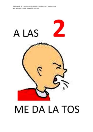 El documento describe las actividades que ocurren cada hora desde la 1 hasta las 10 de la noche, incluyendo la salida de la luna, tos, voltearse, salida de un gato, brincar, pararse de nuevo, salida de un cohete, comer un bizcocho, mirar como llueve y pedir que se repitan las actividades otra vez.