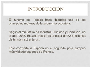 Este documento presenta una actividad para estudiantes de español como lengua extranjera en la que se les pide que creen un blog sobre dos de los lugares más visitados en España: La Alhambra en Granada y el Parque Güell en Barcelona. Los estudiantes trabajarán en grupos para crear una guía detallada de estos lugares que incluirá información histórica, arquitectónica y práctica para visitantes, la cual publicarán en su blog y presentarán oralmente a la clase. El documento explica el proceso de creación
