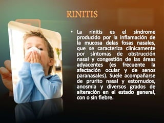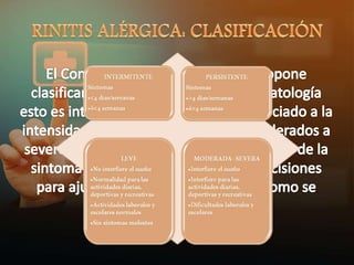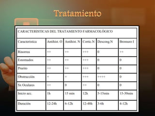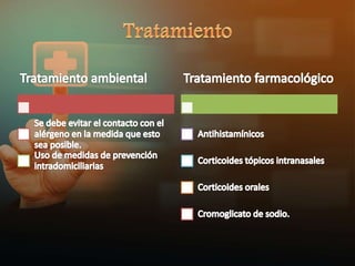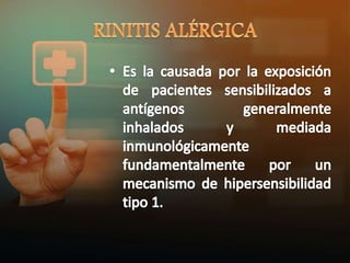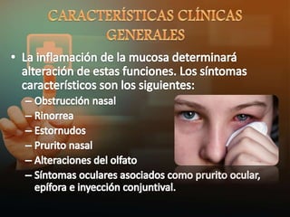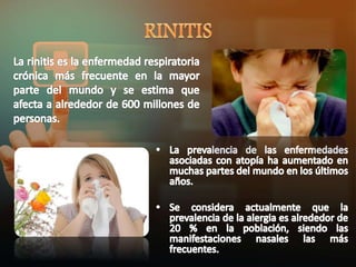 La fase de sensibilización a un alérgeno implica que un linfocito B produce IgE específica para un alérgeno, la IgE se adhiere a células en la mucosa nasal, cuando el alérgeno contacta la mucosa nuevamente se une a la IgE lo que libera histamina y otros mediadores causando la reacción alérgica inmediata.