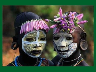 Las tribus del río Omo en Etiopia, Sudán y Kenia practican un arte ancestral utilizando pigmentos naturales para pintar sus cuerpos de forma rápida y sin usar pinceles, siguiendo solo sus instintos sin teoría.