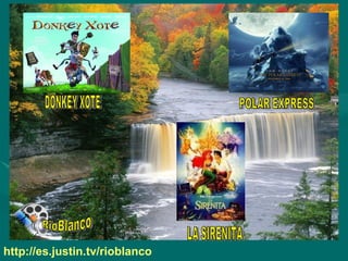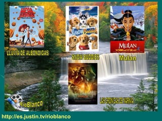 Este documento proporciona una lista de títulos de películas y programas de televisión, incluyendo Snow Buddies, Mulan, Las Crónicas de Narnia, The Polar Express, Donkey Xote y La Sirenita. También incluye el nombre "RioBlanco" repetidamente y un enlace a un canal de transmisión.