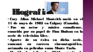 Cory Monteith era un actor y músico canadiense nacido en 1982 que se hizo famoso por su papel como Finn Hudson en la serie Glee. Además de actuar en Glee, protagonizó películas como Monte Carlo. Mantuvo una relación amorosa con su compañera de reparto en Glee, Lea Michele, hasta su muerte en 2013.