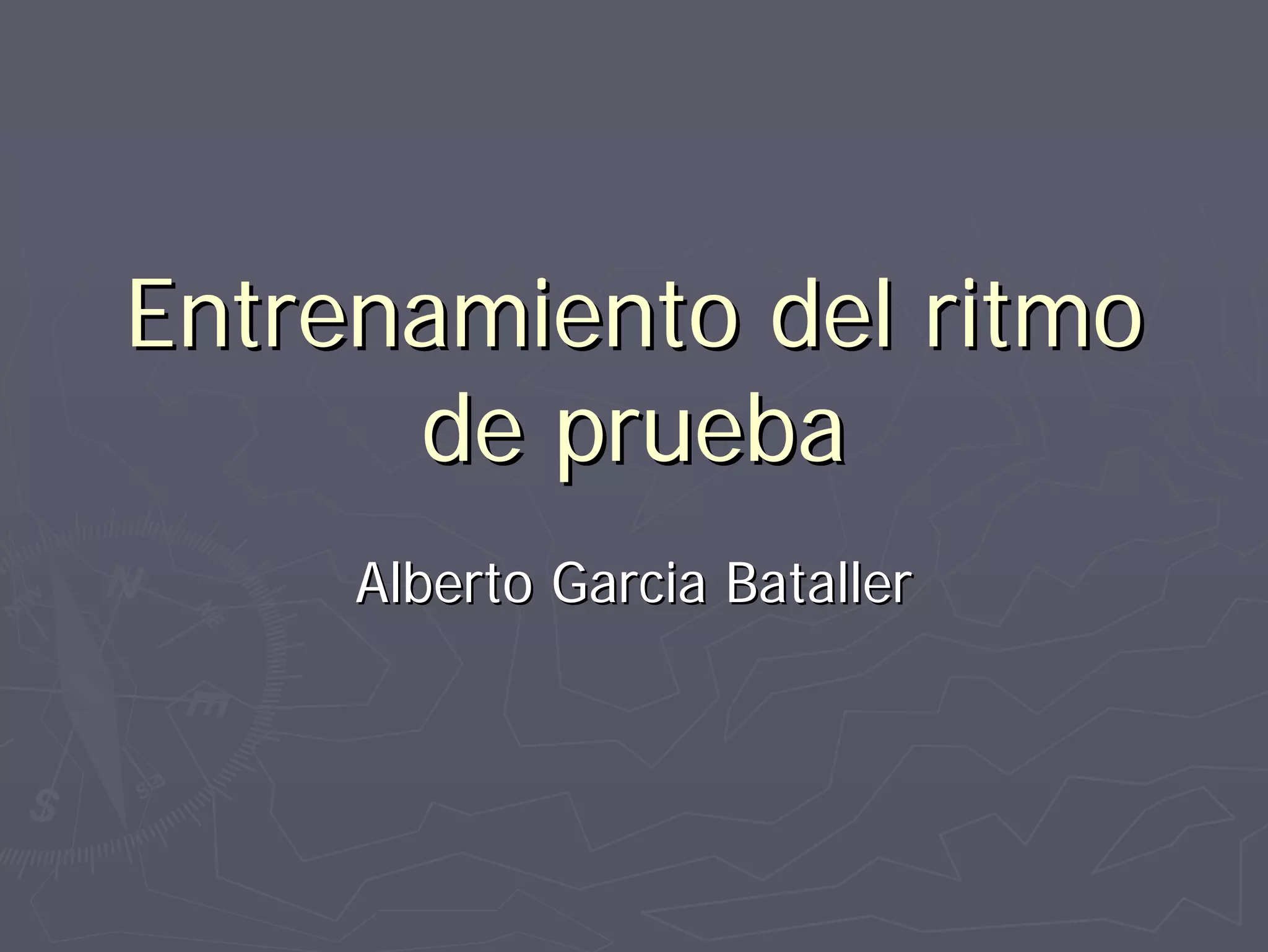 Este documento proporciona información sobre diferentes métodos para entrenar el ritmo de prueba en natación. Explica cómo calcular el ritmo objetivo, las ventajas del método negativo frente al uniforme, y ejemplos de cómo aplicar diferentes métodos como ritmo resistencia, series rotas, y ritmo de competición para preparar el ritmo de prueba.