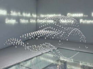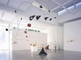 El documento explora el concepto de movimiento en el arte y cómo se expresa a través de diferentes técnicas visuales, incluidas las prácticas de la pintura y el arte cinético. Se discuten elementos como ritmo, organización visual y la relación entre figura y fondo, así como los tipos de arte cinético y su integración con el espectador. Además, se mencionan movimientos artísticos como el op art y el futurismo, que buscan crear ilusiones de movimiento o captar sensaciones dinámicas.