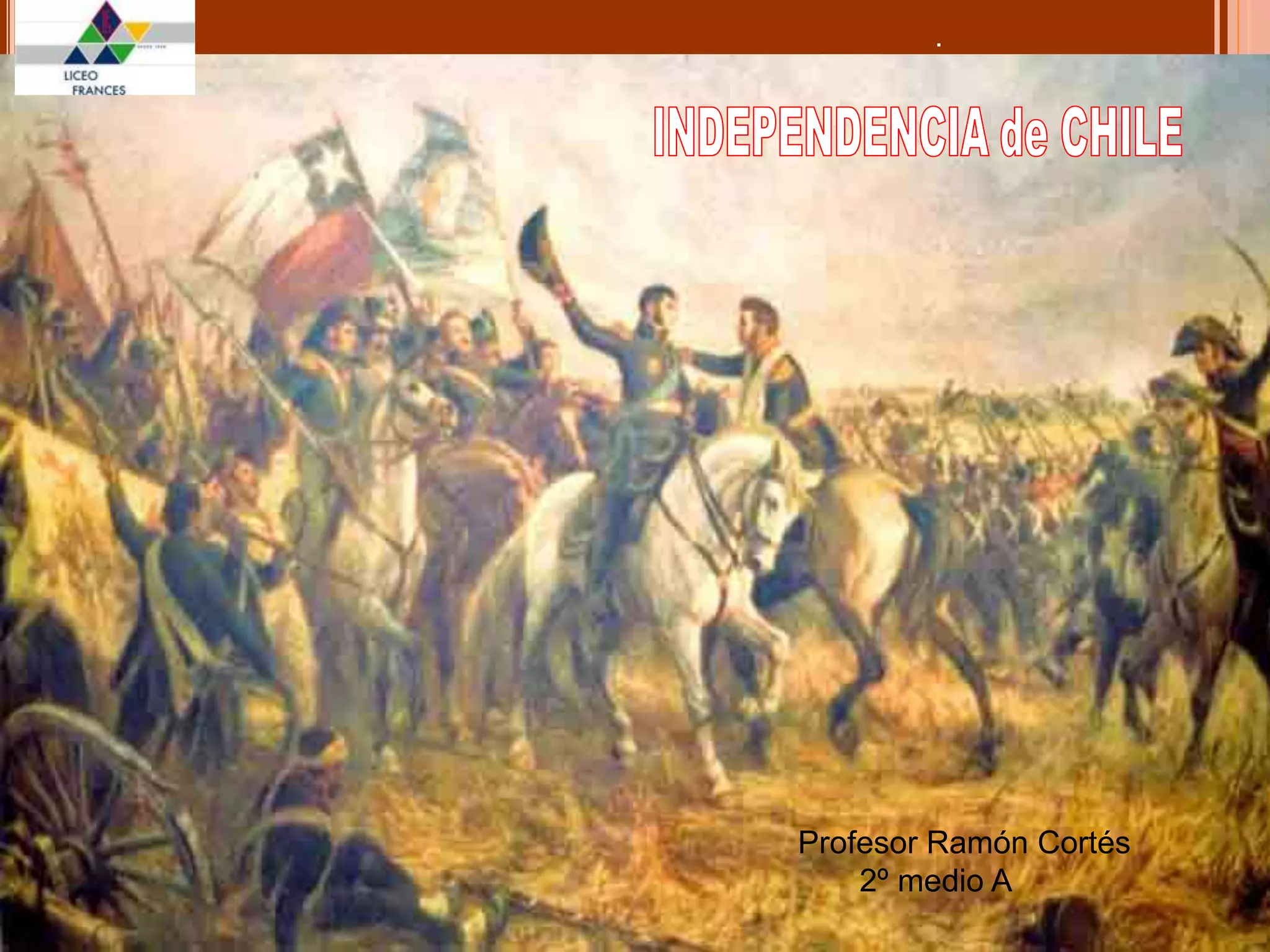 Este documento describe las causas internas y externas que llevaron a la independencia de Chile. Entre las causas externas se encuentran las ideas de la Ilustración y la Revolución Francesa, así como la invasión de España por Napoleón en 1808. Las causas internas incluyen el descontento criollo con las ideas ilustradas, el sentimiento nacionalista y las disputas internas por el poder entre peninsulares y criollos. El documento concluye que la independencia de Chile fue el resultado de múltiples factores internos y externos que se