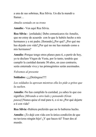 1) El rey Amulio destronó a su hermano Numitor y ordenó matar a todos los varones de la familia real para consolidar su poder.