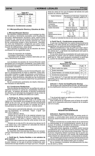Este documento presenta una norma técnica peruana para el diseño sismorresistente de edificaciones. Establece parámetros para zonificar el territorio nacional en función del riesgo sísmico, y define cuatro tipos de perfiles de suelo que afectan la amplificación sísmica. También especifica requisitos generales para el diseño estructural ante sismos, como concebir la estructura de manera simétrica, continua y dúctil para mejorar su comportamiento.