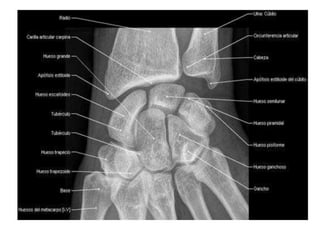 2. También describe la articulación de la muñeca, sus componentes, cápsula fibrosa y ligamentos principales, así como los ejes y movimientos de la muñeca.
