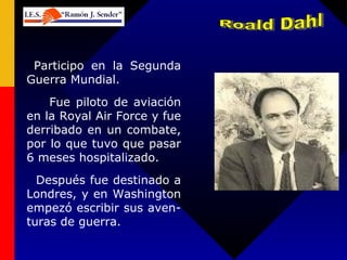 Roald Dahl fue un autor británico nacido en Gales en 1916 que se hizo famoso por sus libros infantiles y cuentos. Participó en la Segunda Guerra Mundial como piloto antes de dedicarse a la escritura. Escribió clásicos como "Charlie y la fábrica de chocolate", "Matilda" y "Las brujas", cuyas obras han sido llevadas al cine. Falleció en 1990 a los 74 años.