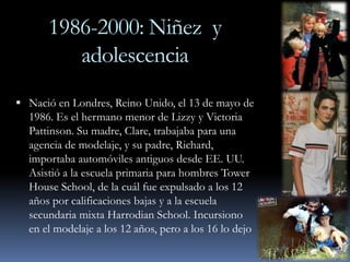 Robert Pattinson nació en Londres en 1986. Comenzó su carrera como actor en teatro a los 15 años y obtuvo pequeños papeles en televisión y películas. Su gran oportunidad llegó en 2005 cuando interpretó a Cedric Diggory en Harry Potter y el cáliz de fuego. En 2007 alcanzó fama internacional como Edward Cullen en la saga Crepúsculo basada en los libros de Stephenie Meyer. Desde entonces ha protagonizado numerosas películas que lo han consolidado como actor.