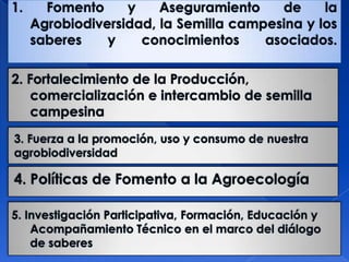 Este documento debate sobre qué modelo agrario y alimentario se desea para Ecuador. Plantea que el modelo actual basado en monocultivos, agroquímicos y transgénicos no es sostenible y ha generado problemas ambientales y de salud. Propone cambiar hacia un modelo agroecológico que promueva la agrobiodiversidad, circuitos cortos de comercialización y soberanía alimentaria. Estudios muestran que la agroecología puede duplicar la producción de alimentos de forma sostenible.