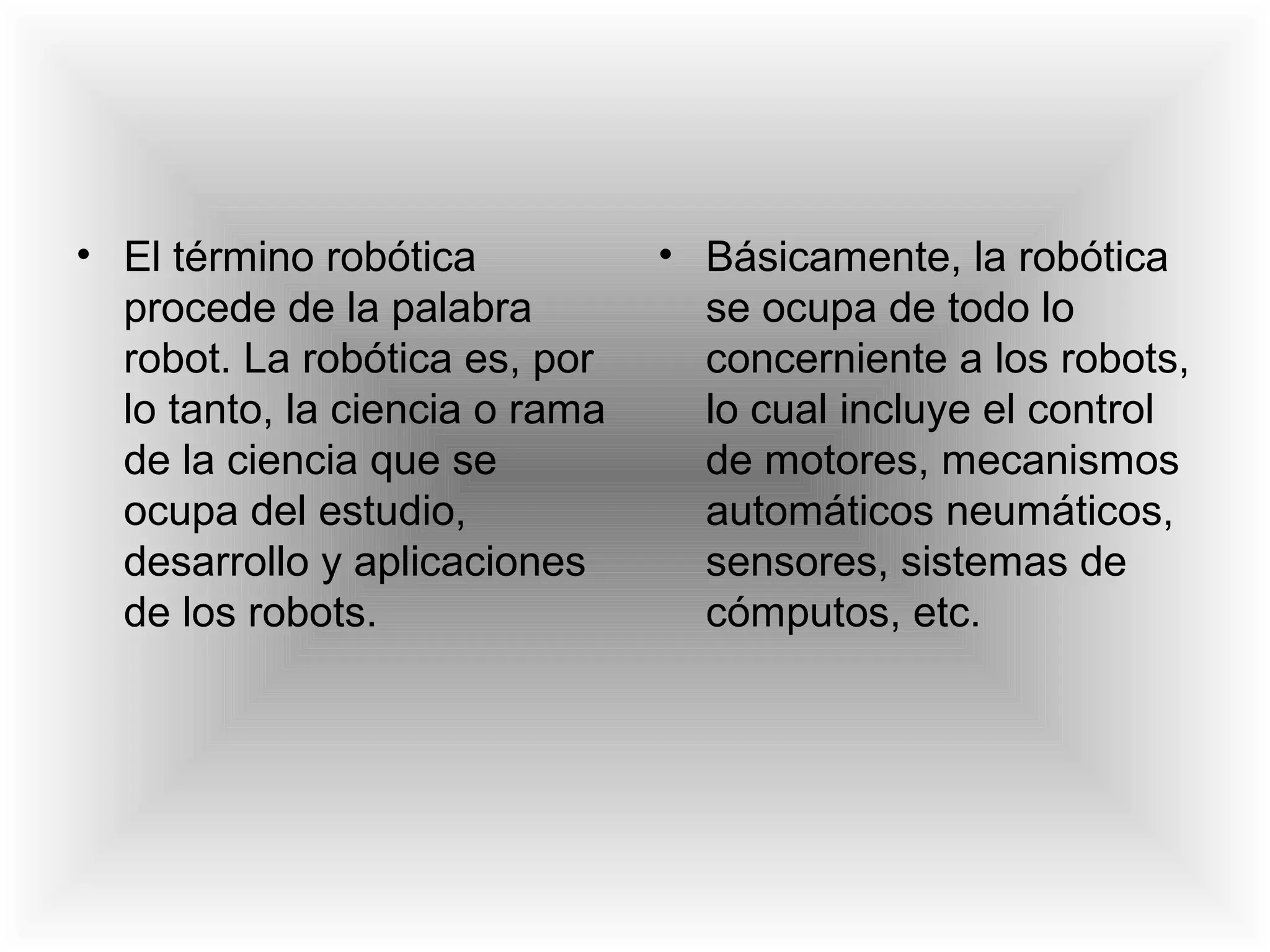 La robótica estudia y desarrolla robots, incluyendo el control de motores, sensores y sistemas de cómputo. La inteligencia artificial construye procesos racionales no vivos mediante búsqueda, algoritmos genéticos, redes neuronales y razonamiento lógico para maximizar el rendimiento basado en entradas y conocimiento almacenado. El documento describe varios tipos de robots e inteligencia artificial.