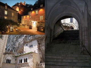 Rocamadour es un pueblo situado en el departamento de Lot, en Francia, que se asienta sobre un acantilado de 150 metros sobre el río Alzou. Es notable por sus 7 capillas que componen el santuario dedicado a Nuestra Señora desde la Alta Edad Media, y es uno de los lugares más visitados de Francia, acogiendo a más de un millón de visitantes cada año, ya sean turistas o peregrinos.