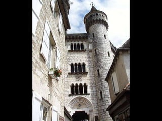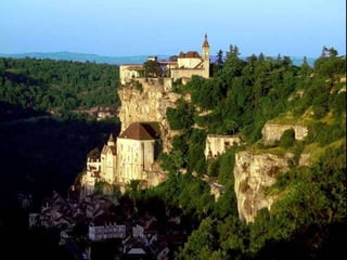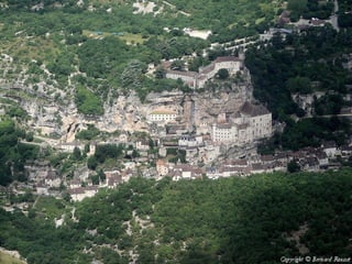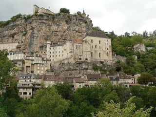 Rocamadour es un pueblo francés construido sobre un acantilado de 150 metros que se agarra a la roca. Es notable por sus 7 capillas dedicadas a Nuestra Señora desde la Edad Media y atrae a más de un millón de visitantes y peregrinos cada año. Rocamadour se convirtió en un importante punto de peregrinación en el Camino de Santiago desde el siglo XI debido a la atracción religiosa de la Virgen Negra.