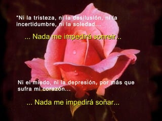 El documento es una reflexión sobre vivir la vida plenamente a pesar de las dificultades. Alienta al lector a mantener la esperanza, el optimismo y el equilibrio emocional para enfrentar la tristeza, la soledad y otros desafíos. Propone vivir cada día como si fuera el único, manteniendo la certeza de lograr los objetivos a través del esfuerzo constante. El objetivo final es dar lo mejor de uno mismo y vivir intensamente cada día para que la propia vida sea una inspiración para los demás.