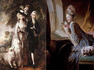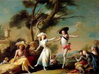 El estilo Rococó surgió en Francia en el siglo XVIII durante el reinado de Luis XV. Se caracteriza por el uso de colores suaves y luminosos, formas inspiradas en la naturaleza y temas galantes y amorosos. El Rococó refleja la vida aristocrática libre de preocupaciones a través del arte aplicado a objetos como porcelana, mobiliario y decoración de interiores.