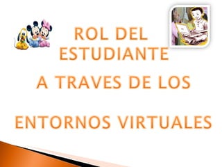 La introducción de la tecnología en la educación ha requerido nuevos roles para profesores y estudiantes, compartiendo ahora la responsabilidad de construir aprendizajes significativos. El aprendizaje puede darse en entornos virtuales donde el estudiante es más protagonista y responsable de su propio aprendizaje. En la educación virtual, el rol del estudiante cambia de pasivo a activo, autogestionando su aprendizaje de manera autónoma pero no autodidacta, con el apoyo del profesor virtual. El estudiante debe ser motiv