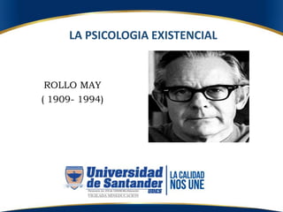 Rollo May fue un psicólogo existencial estadounidense. Tuvo una infancia difícil con una mala relación con sus padres. Estudió filosofía y teología y se ordenó sacerdote. Abrió su propia consulta privada de psicología y escribió libros sobre ansiedad y la condición humana. Defendió que la libertad es la capacidad de tomar decisiones propias y que la personalidad se construye a través de las experiencias y relaciones con los demás y uno mismo.