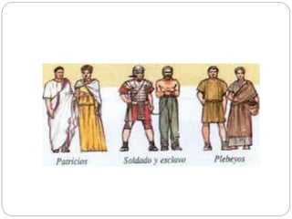 Este documento resume lo que se estudiará sobre la antigua Roma. Se divide la historia romana en Monarquía, República e Imperio. Se describe la economía, sociedad, ejército, ciudades, viviendas, religión y cultura romanas. Se detallan aspectos como la arquitectura, escultura, pintura y mosaicos romanos. El documento ofrece una visión general de la civilización romana.
