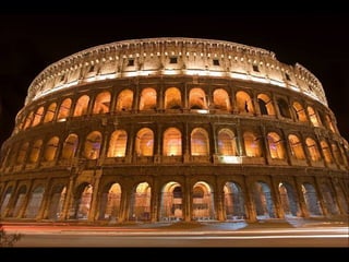 Este documento proporciona una lista de lugares y atracciones turísticas populares en Roma, Italia. Entre los lugares mencionados se encuentran el Coliseo, el Foro Romano, la Fontana di Trevi, la Piazza Navona, el Panteón, el Castillo Sant'Angelo, la Basílica de San Juan de Letrán, las Termas de Caracalla, la Basílica de San Pedro, la Capilla Sixtina y la Biblioteca Vaticana.