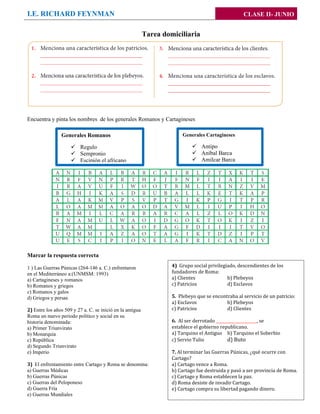 La República romana se estableció en 509 a.C. con tres instituciones: Comicios, Senado y Magistrados. Hubo luchas entre patricios y plebeyos por los derechos, pero los plebeyos eventualmente obtuvieron el derecho a ser magistrados y senadores. Roma libró tres Guerras Púnicas contra Cartago entre los siglos III-II a.C., emergiendo como la potencia dominante del Mediterráneo. Esto llevó a guerras civiles entre facciones romanas, incluyendo los triunvir