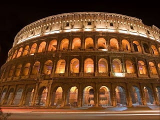 Este documento contiene una lista de lugares y atracciones turísticas en Roma, Italia. Incluye sitios como el Coliseo, el Foro Romano, la Fontana de Trevi, la Piazza Navona, el Panteón, Castel Sant'Angelo, la Basílica de San Pedro, la Capilla Sixtina y la Biblioteca Vaticana.
