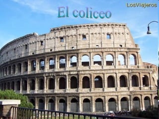 Este documento presenta una breve guía de lugares históricos en Roma, incluyendo el Coliseo, el Panteón y la estatua de Rómulo y Remo. También incluye un mapa de la provincia de Roma (Lacio).