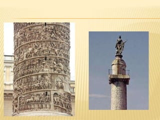 El documento resume aspectos clave de la civilización romana, incluyendo sus orígenes en la fundación de Roma por Rómulo y Remo, la evolución de la monarquía a la república y luego al imperio, las contribuciones culturales como la arquitectura, escultura y lengua latina, y la estructura de la sociedad romana compuesta por patricios, plebeyos y esclavos.