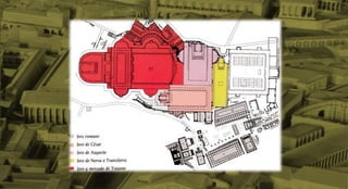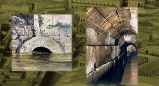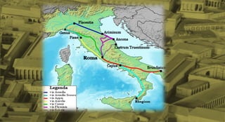 Roma aprovechó su ubicación geográfica estratégica en la península itálica para expandirse y desarrollar una extensa red vial que unió su imperio. Construyó infraestructura urbana como acueductos, alcantarillado, mercados y termas para satisfacer las necesidades de su gran población, la cual alcanzó los 2 millones de habitantes. El planeamiento urbano romano, con calles rectas y edificios públicos como el Foro, sirvió de modelo para el desarrollo de ciud