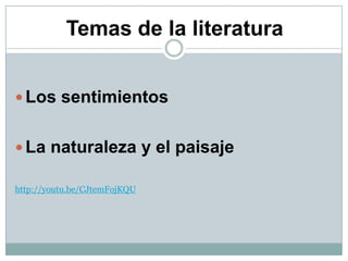 El documento describe las características generales del Romanticismo en el siglo XIX, incluyendo el individualismo, la libertad y el énfasis en los sentimientos y la naturaleza. También discute los principales exponentes de la poesía, prosa y teatro románticos como José de Espronceda, Mariano José de Larra y Don José Zorrilla. Finalmente, señala a Rosalía de Castro y Gustavo Adolfo Bécquer como figuras representativas del posromanticismo.
