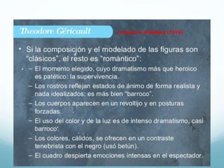 El romanticismo en la primera mitad del siglo XIX se caracteriza por la expresión de la individualidad y la intensidad emocional del artista, buscando la belleza en lo cotidiano y en la naturaleza como fuente de sentimientos. Exponentes como Théodore Géricault y Eugène Delacroix destacaron en este movimiento, abordando temas como la miseria social y la grandeza de la emoción a través de obras impactantes como 'La balsa de la Medusa'. El romanticismo no solo transformó el arte, sino que también redefinió la relación entre el artista y la sociedad, promoviendo la libertad creativa y la expresión personal.