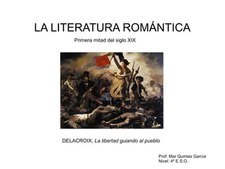 El documento proporciona información sobre la literatura romántica en España en la primera mitad del siglo XIX. Explica las características del romanticismo como la exaltación de la libertad individual y la naturaleza. Resume los principales géneros románticos como la poesía, novela y teatro. Destaca a autores representativos como Espronceda, Bécquer y Zorrilla.