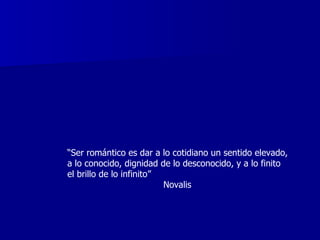 El documento resume las características principales del Romanticismo como movimiento cultural que se desarrolló en Europa durante el siglo XIX. Exalta la individualidad y la libertad frente a las normas establecidas. Los románticos buscaban lo ideal y lo absoluto a través de la evasión a otras épocas, países y el mundo de los sueños. Algunos de sus temas clave eran los sentimientos humanos, el folklore, la tradición y el paisaje. El documento también describe el contexto político y científico de la época así como