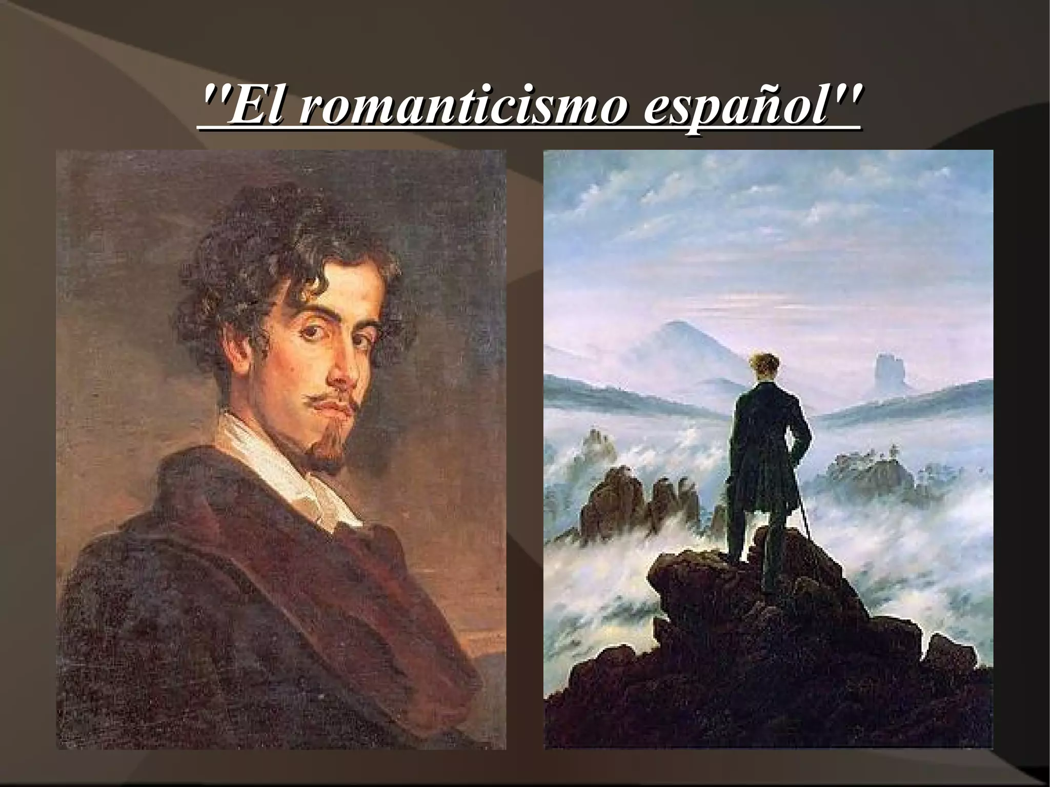 El documento resume las características principales del Romanticismo español. Explica que surgió a finales del siglo XVIII como reacción contra la Ilustración y el Clasicismo, dando importancia a los sentimientos. Enumera algunas características de la literatura romántica como la primacía del yo y la creatividad. Menciona a algunos autores principales como Becquer, Larra y Espronceda y algunas de sus obras más destacadas. Finalmente, incluye extractos literarios de obras románticas y concluye con