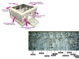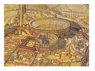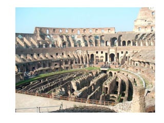 El arte romano estuvo influenciado por las culturas etrusca y helenística. Los romanos desarrollaron importantes obras de ingeniería como acueductos y puentes para abastecer de agua a sus ciudades. Construyeron edificios públicos como basílicas, teatros y anfiteatros para espectáculos, así como templos y mausoleos. La escultura romana incluía retratos, relieves históricos y columnas conmemorativas. Los emperadores romanos también construyeron palacios imperiales