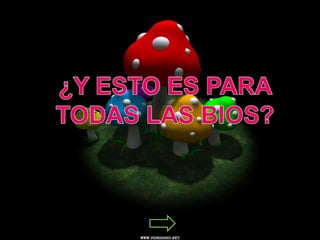 El documento presenta información sobre la BIOS de una computadora, incluyendo su función, tipos de chips BIOS, actualización de la BIOS, y proceso de carga inicial. También cubre conceptos como firmware, Flash ROM, y tipos de BIOS.