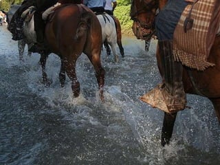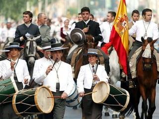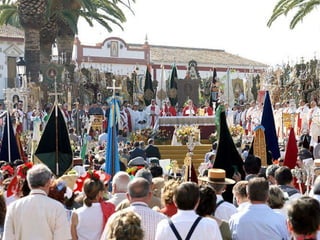 La Romería del Rocío es una gran peregrinación católica en Huelva, España que honra a la Virgen del Rocío. Cada Pentecostés, más de 100 hermandades y gente de todo el mundo viajan a la ermita de El Rocío para ver a la Virgen. Los peregrinos recorren el camino a pie, a caballo o en carretas decoradas, pasando por el parque Doñana. Por la noche, los almonteños sacan a la Virgen de la ermita en procesión por la aldea.