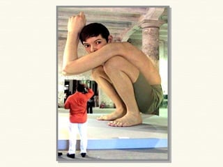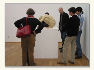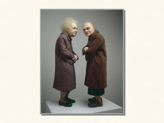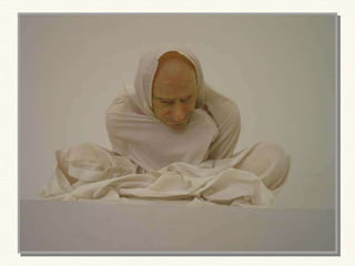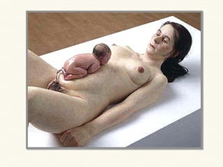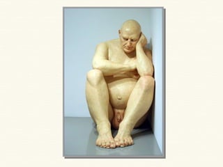 Ron Mueck es un escultor australiano especializado en crear figuras humanas hiperrealistas a gran escala mediante el modelado. Algunas de sus obras más destacadas incluyen "Mujer embarazada" de 1997, que mide 2,52 metros de altura y retrata la belleza de la maternidad, "Hombre grande" de 1998 que representa la soledad humana, y "Chico" de 1999 que mide 4,90 x 4,90 x 2,50 metros.