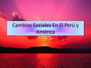 El documento describe los cambios sociales que han ocurrido en el Perú y América Latina. Incluye la expansión urbana y migración a las ciudades durante la crisis económica de 1929, el crecimiento de la población y urbanización, y los procesos de movilización social que desafían a las élites políticas. También discute cambios en la agricultura, estilos de vida, y la diversidad cultural en el Perú.