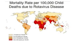 Rotavirus causa gastroenteritis y diarrea en muchas especies de mamíferos y aves. Afecta principalmente a animales jóvenes menores de 8 semanas y se transmite a través de las heces. Los signos clínicos incluyen diarrea acuosa, vómitos y deshidratación. No tiene tratamiento específico, solo sintomático a través de reposición de líquidos y electrolitos.