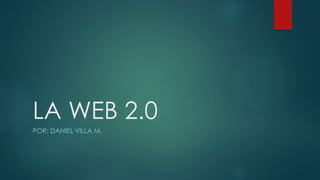 El documento define la Web 2.0 como aplicaciones y herramientas que permiten interactuar con la información y compartir contenidos en la red. Surge en 2004 impulsada por Tim O'Reilly y otros con el objetivo de ir más allá de solo acceder a la información. Se clasifican las herramientas de la Web 2.0 en repositorios, integración y producción. La diferencia principal entre la Web 1.0 y 2.0 es que esta última permite interactuar y modificar contenidos.