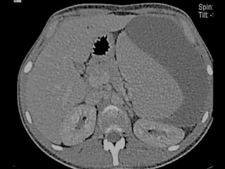 La rotura espontánea del bazo es una causa rara pero potencialmente letal de dolor abdominal que puede deberse a alteraciones congénitas, infecciones, enfermedades metabólicas, neoplasias, inflamación o alteraciones vasculares. Los síntomas incluyen dolor abdominal que se generaliza, distensión abdominal y signos de irritación peritoneal. El diagnóstico se realiza mediante cuadro clínico, exámenes de laboratorio, placa de abdomen, ecografía, lavado peritoneal o TC, y el tratamiento implica líquidos intra